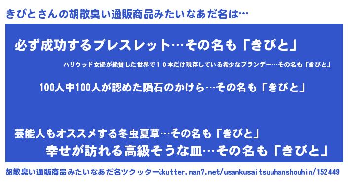 | ヒーロー風カッコイイあだ名 | 『正義の使者きびと』『スーパーキビト』 |