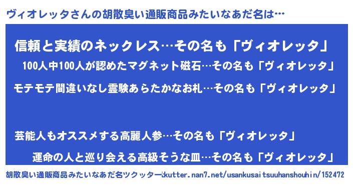 | 男性向けラノベタイトル風あだ名 | 『ヴィオレッタの憂鬱』 |