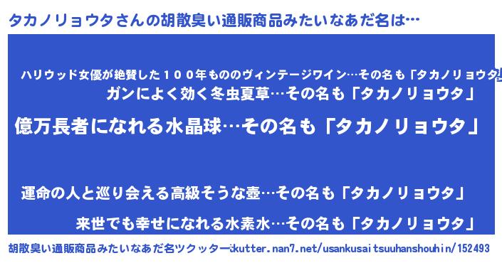 | ヘコむあだ名 | 『タカもー』『タカノリョウタ(笑)』 |