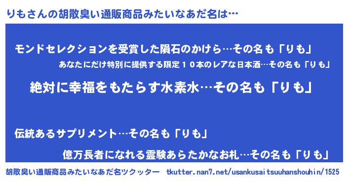 | 男性向けラノベタイトル風あだ名 | 『リモスレイヤー』『りもの憂鬱』 |