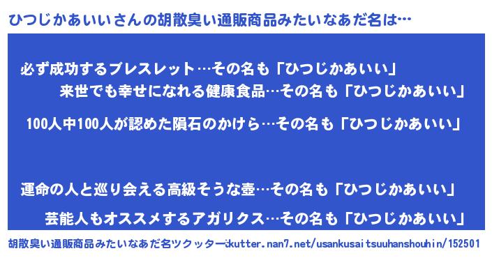 | ヘコむあだ名 | 『ひつっふぃ~』『ひつじかあいい(小並感)』 |