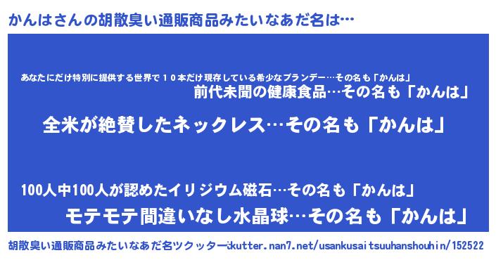 | 意味不明あだ名 | 『とにかく怪しいかんは』 |
