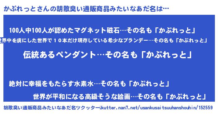 | 意味不明あだ名 | 『とにかく怪しいかぷれっと』 |
