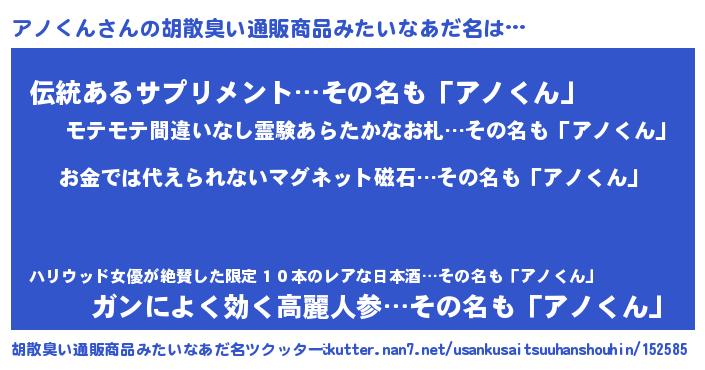 | ヘコむあだ名 | 『アノを』『アノもー』『豆乳』 |