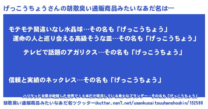 | 意味不明あだ名 | 『自称げっこうちょう』 |