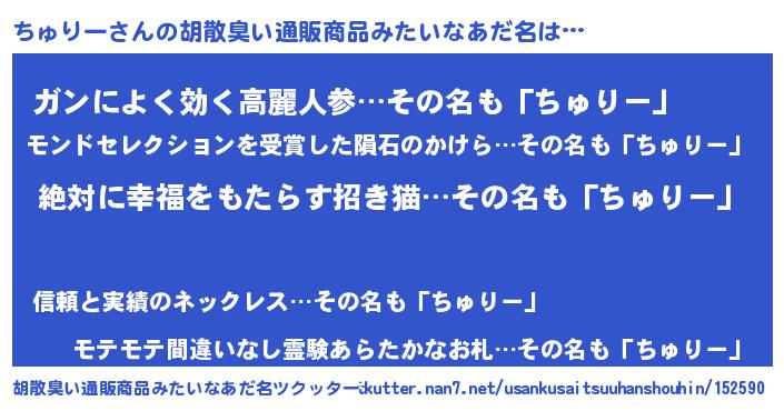 | ヘコむあだ名 | 『ちゅりー(笑)』『ちゅにゅー』 |