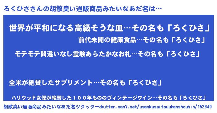 | ヘコむあだ名 | 『ろくっふぃ~』『なまこ酢』 |