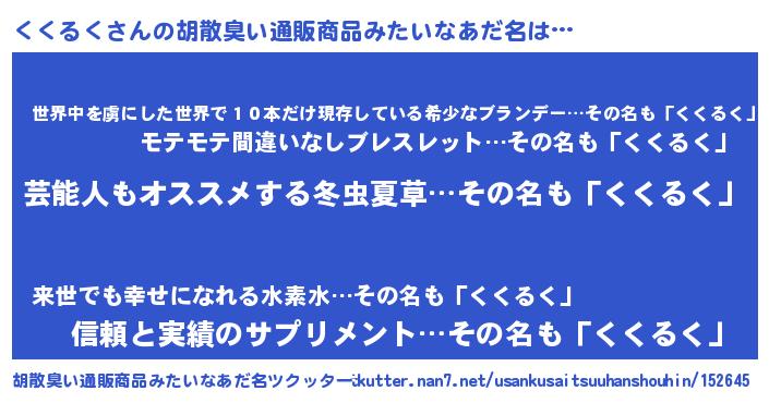 | 男性向けラノベタイトル風あだ名 | 『Re:くくるくから始める異世界生活』 |