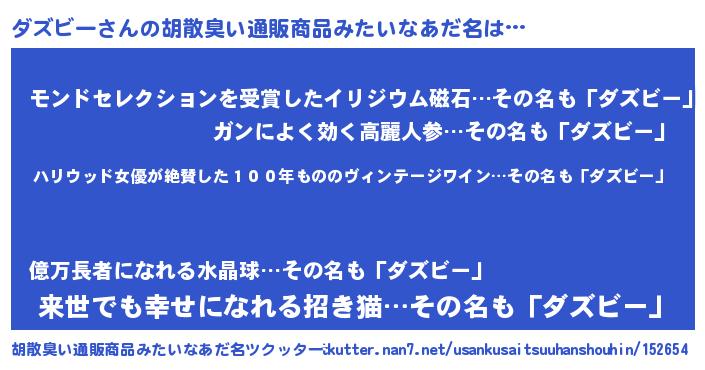 | ヘコむあだ名 | 『ダズビー(笑)』『ダズもー』 |