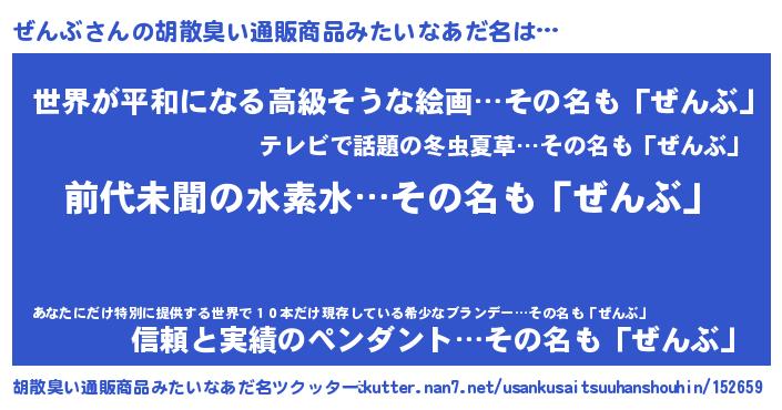 | 欧米人風あだ名 | 『アンジェラ・ぜんぶ』『ウサインぜんぶ』 |