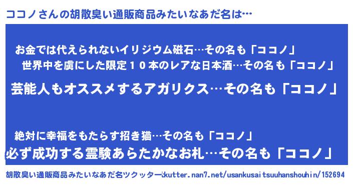 | ヘコむあだ名 | 『ココもー』『ココノ(爆)』『豆乳』 |