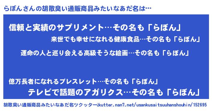 | 意味不明あだ名 | 『つくし科らぼん属』『自称らぼん』 |
