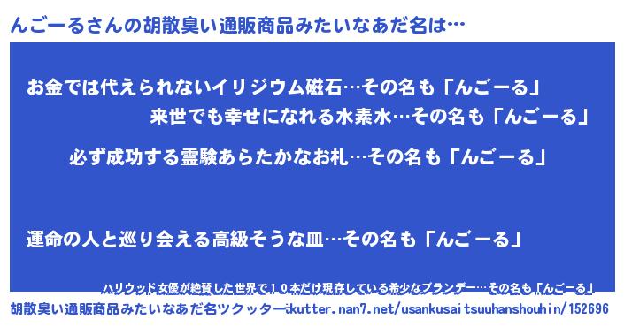 | 自動車の名前っぽいあだ名 | 『ンールスゴイス』『ンゴティマ』 |