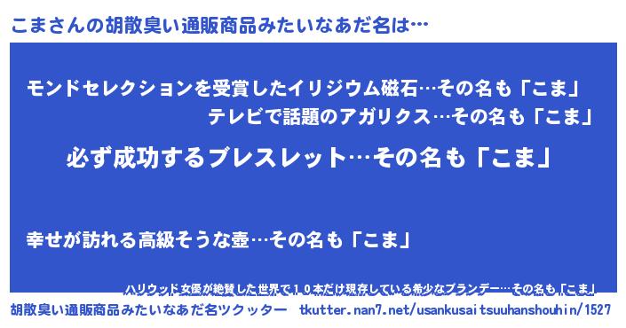 | 男性向けラノベタイトル風あだ名 | 『こまの憂鬱』 |