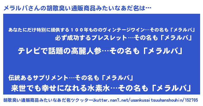 | 意味不明あだ名 | 『自称メラルバ』『永久保存メラルバ』 |