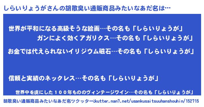 | 女子向けラノベタイトル風あだ名 | 『しらいりょうが恋絵巻』 |