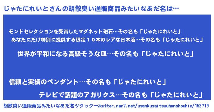 | 欧米人風あだ名 | 『トリンドルじゃたにれいと』 |