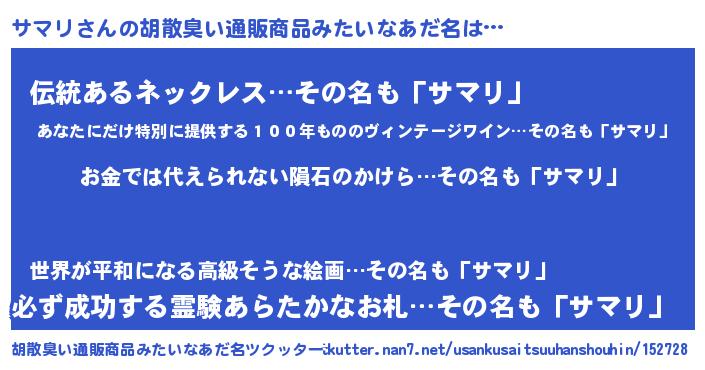 | ヘコむあだ名 | 『サマっぺ』『サマにゅー』『牛乳』 |