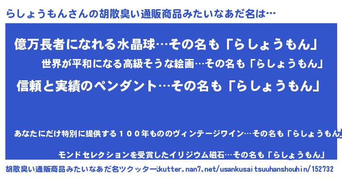 らしょうもんさんの胡散臭い通販商品みたいなあだ名をツクッター!