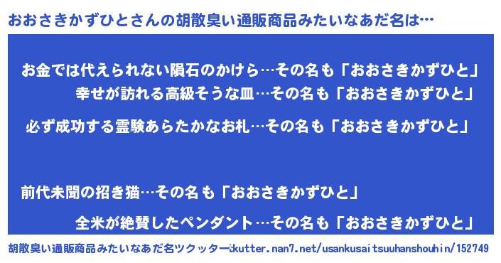 | 男性向けラノベタイトル風あだ名 | 『緋弾のオオサキカズヒト』 |