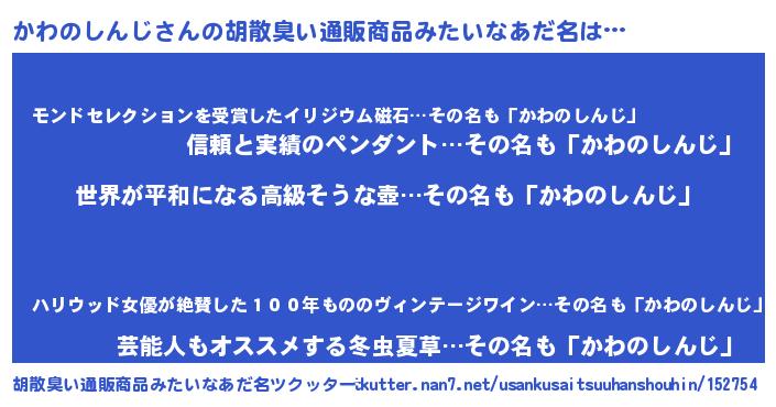 | 意味不明あだ名 | 『かわのしんじフォーエバー』 |