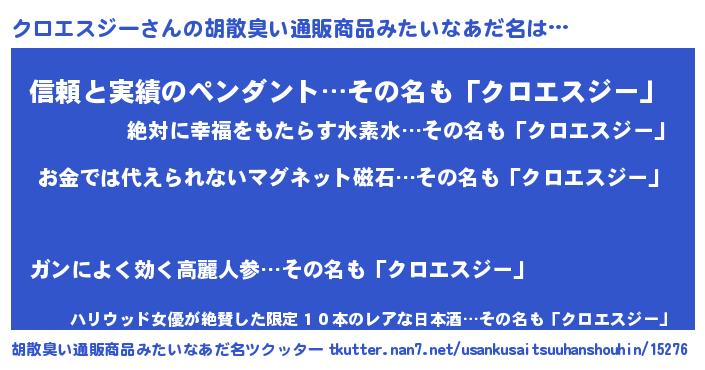 | ヒーロー風カッコイイあだ名 | 『愛の使者クロエスジー』『暗黒騎士クロ』 |