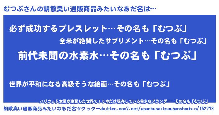 | 男性向けラノベタイトル風あだ名 | 『うちのむつぶが世界を掌握している!』 |