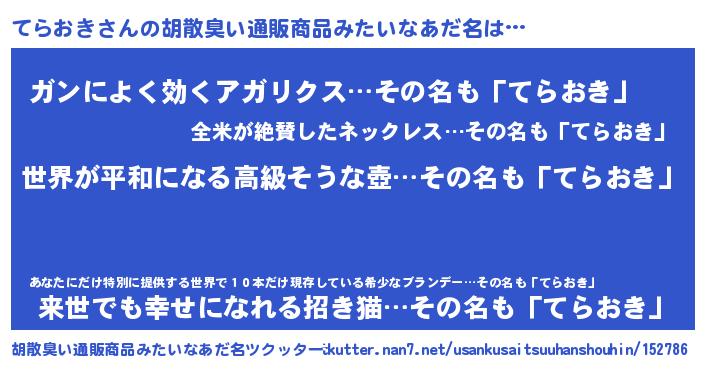 | 意味不明あだ名 | 『てらおきフォーエバー』『自称てらおき』 |