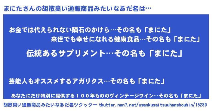 | ヘコむあだ名 | 『まにを』『まにた(震え声)』『豆乳』 |