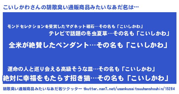 | ヘコむあだ名 | 『こいぷりん』『こいしかわ(震え声)』 |