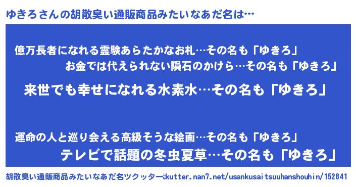 | ヘコむあだ名 | 『ゆきろ(遠い目)』『ゆきふぇ~』 |