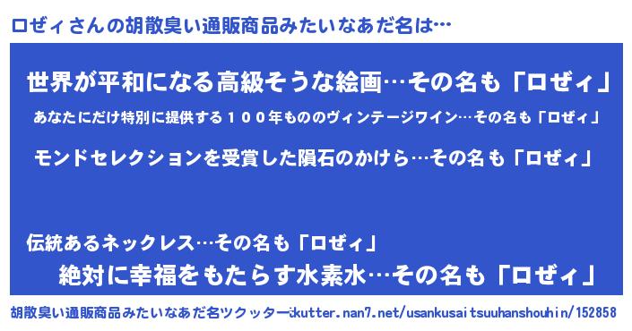 | ヒーロー風カッコイイあだ名 | 『慈愛の使者ロぜィ』『ネオロゼィ』 |