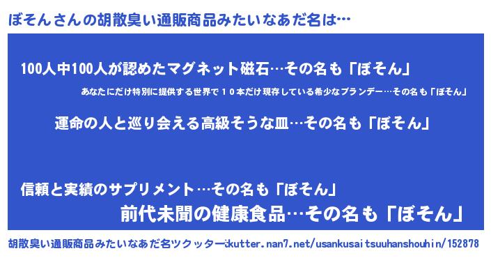| ヒーロー風カッコイイあだ名 | 『ウルトラぼそんマン』『ネオボソン』 |
