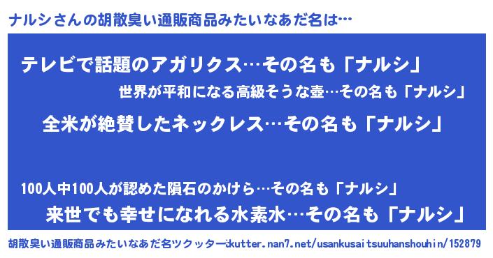 | ヒーロー風カッコイイあだ名 | 『炎刃騎士ナル』『サイバー戦士ナルシ』 |