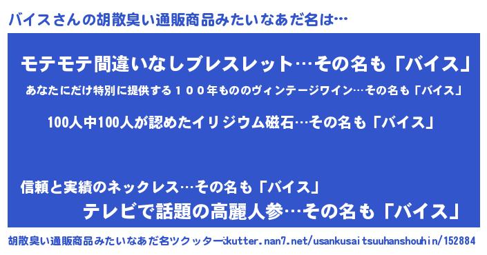 | ヒーロー風カッコイイあだ名 | 『正義の使者バイス』『スーパーバイス』 |