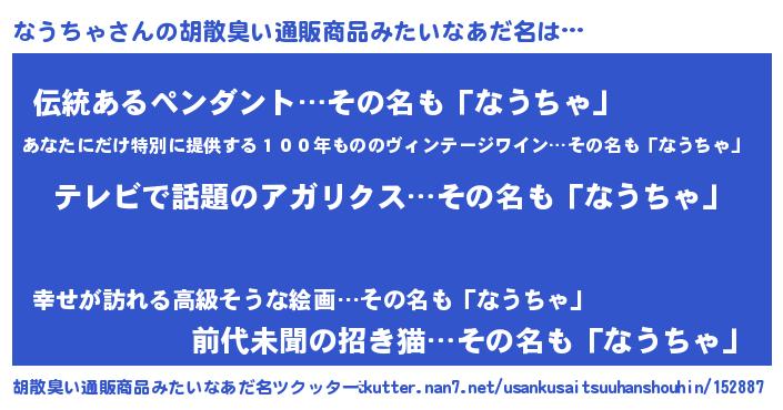 | 意味不明あだ名 | 『自称なうちゃ』『永久保存なうちゃ』 |