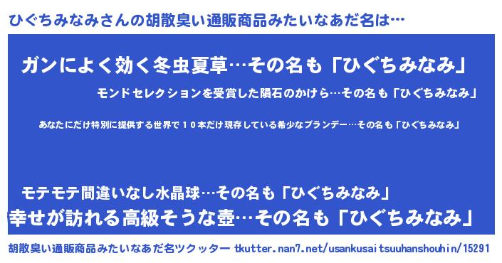 | 男性向けラノベタイトル風あだ名 | 『この素晴らしい世界にひぐちみなみを!』 |