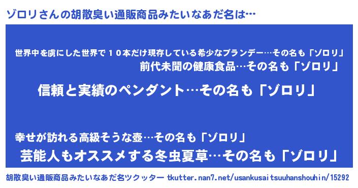 | ファンタジー風あだ名 | 『ファントムゾロス』『ヴァルゾローナ』 |