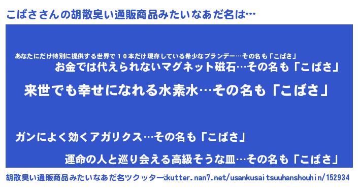 | 男性向けラノベタイトル風あだ名 | 『こばさという概念が存在しない退屈な世界 』 |