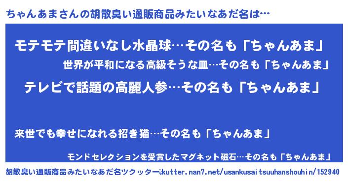 | 意味不明あだ名 | 『自称ちゃんあま』『ペロリンちゃんあま』 |