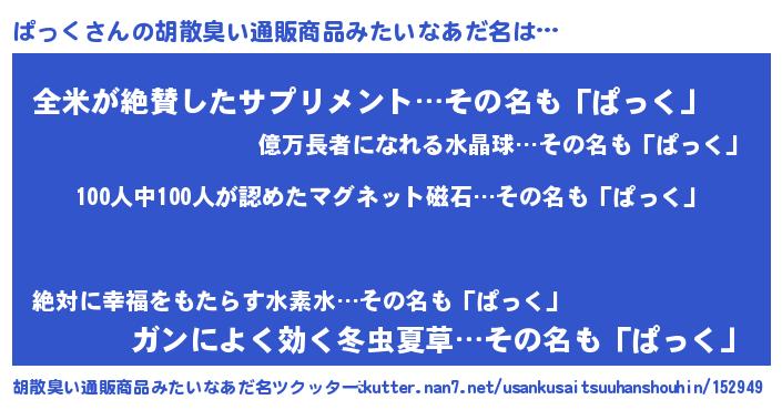 | ポケモン風あだ名 | 『パックウザ』『ヒパック』 |