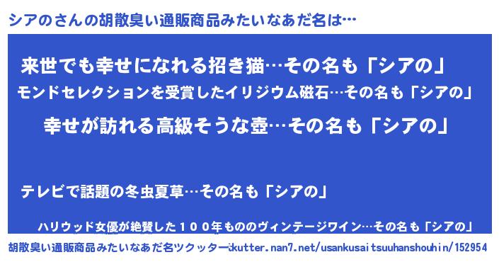 | 意味不明あだ名 | 『しいたけ科シアの属』『永久保存シアの』 |