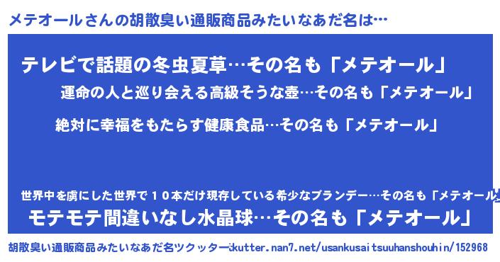| 意味不明あだ名 | 『永久保存メテオール』『自称メテオール』 |