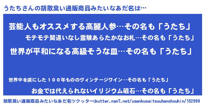 | 意味不明あだ名 | 『なめこ科うたち属』『自称うたち』 |