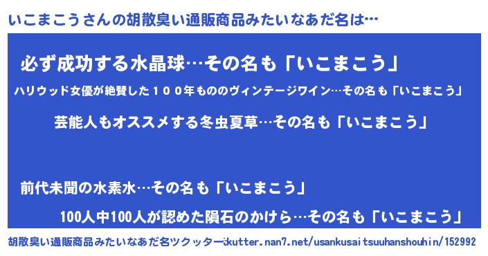 | ヘコむあだ名 | 『いこもー』『いこまこう(遠い目)』 |