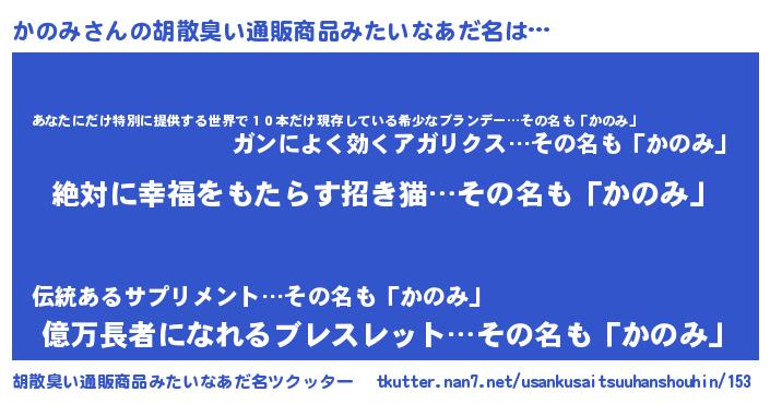 | ヘコむあだ名 | 『かのみ(笑)』『かのっふぃ~』 |
