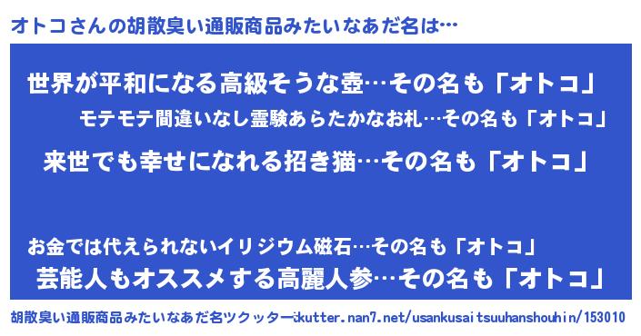 | ヘコむあだ名 | 『オトコ(笑)』『牛乳』『オトにゅー』 |