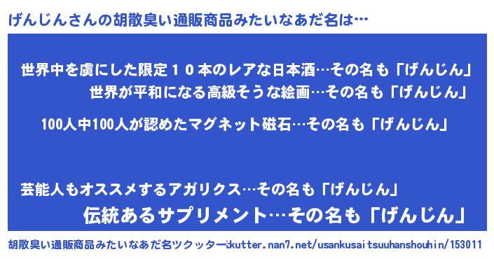 | ヘコむあだ名 | 『げんお』『なまこ酢』『げんにゅー』 |
