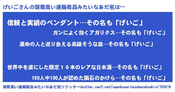 | 肩書あだ名 | 『げいご上級大将』『げいご総理大臣』 |