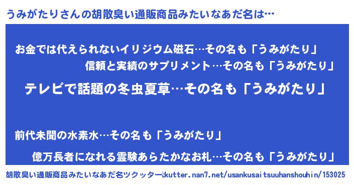 | 女子向けラノベタイトル風あだ名 | 『うみがたりの玉の輿計画!』 |